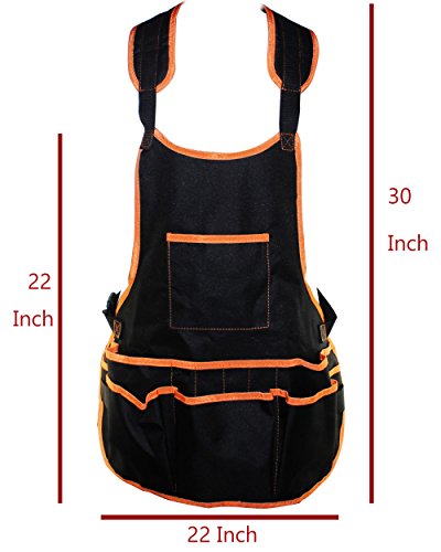 - Work Apron Made from strong and waterproof Oxford Canvas. Straps are double sewn to the apron for extra strength and durability.When you work Protects against spills and flying debris. 16 tool pockets to safely organize your hammers, screws, pencils, knives and other tools.Perfect for woodworking, drywall work, carpenters, electricians, machinists, mechanics, linemen, and others. Also, a great choice for gardening, grilling and BBQ