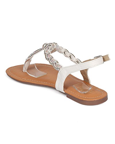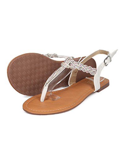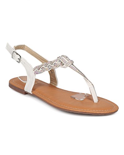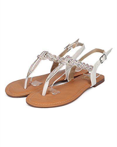 Studio : Betani Publisher : Betani Binding : Apparel Product Description These perfect summer sandals are made with a vegan upper, t-strap construction and rhinestone details throughout. Also made with a flat heel and slingback strap with adjustable buckle closure. 0