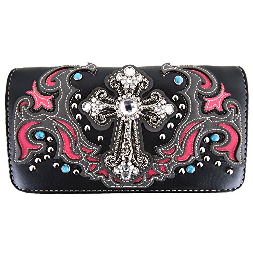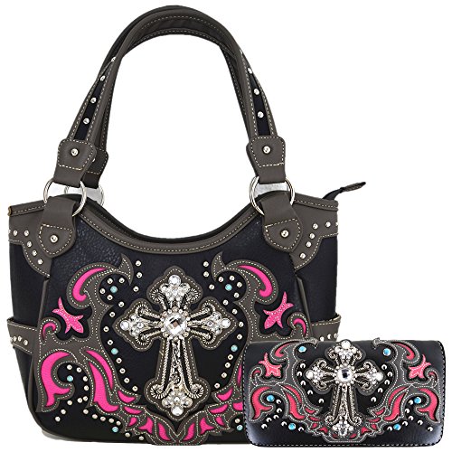 Western Style Rhinestone Cross Tote Concealed Carry Purse Laser Cut Handbag Women Shoulder Bag Wallet Set
