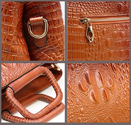 - [Material]: Top Grain Leather with Crocodile Pattern.Light Gold Hardware and Coffee Polyester Lining.