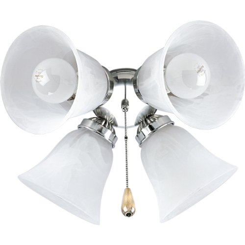 P2610-09 Finish: Brushed Nickel Features: -Cobblestone.-Material: Glass.-Platinum Mist.-Four-light ceiling fan light fixture.-Spring clip glass attachment and quick-Connect wiring.-Bulb type: Incandescent. Specifications: -Requires 4 medium base lamps, each 60W maximum. Dimensions: -Overall dimensions: 6.25'' H x 15'' W. Collection: -AirPro collection.