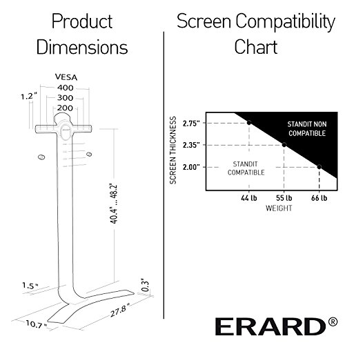 -. Binding : Electronics -. Brand : Erard -. Color : Black and White -. EAN : 3185280446629 -. Feature : First TV wall mount bracket with no drilling of the wall required / 5 mm (0.19 in) steel structure, Repositionable stabilizing pad made of elastomer / Height of the screen is adjustable on 200 mm (7.8 in) (5 positions) / Anti fall device for the screen, VESA 200 to 400 / Hidden guide for cables, Can be painted -. Label : ERARD -. Manufacturer : ERARD -. MPN : 044662 -. PackageQuantity : 1 -. PartNumber : 044662 -. ProductGroup : Speakers -. ProductTypeName : AV_FURNITURE -. Publisher : ERARD -. Studio : ERARD -. Title : STANDiT 400 No Drill Wall Mount for 30"- 55" TV Screens