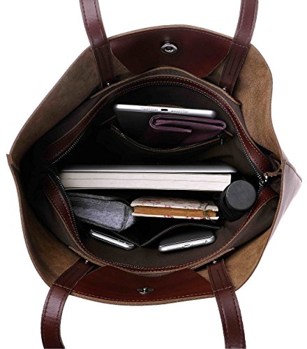 ZLYC Women Leather Commuter Tote Handbag Shopper Shoulder Bag with Removable Lining