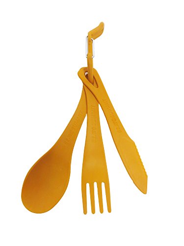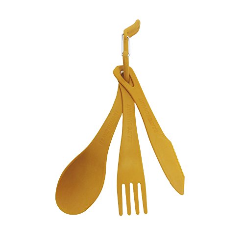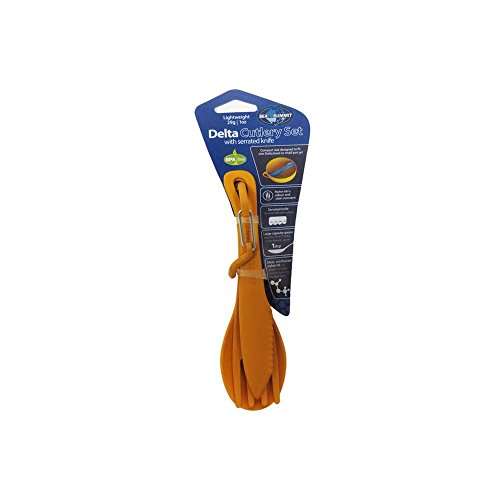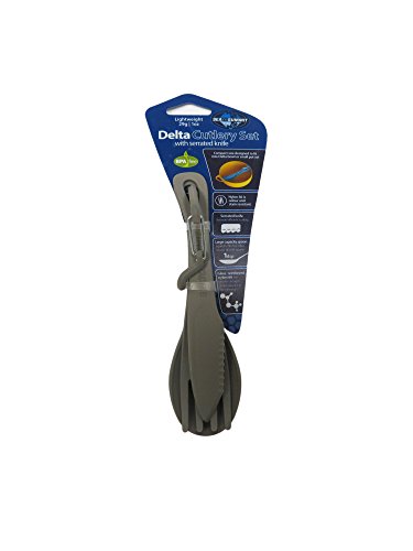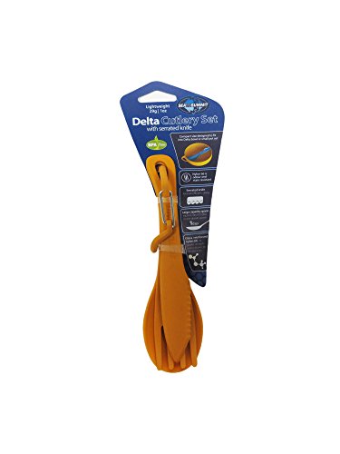Studio : Sea to Summit Publisher : Sea to Summit Binding : Misc. Product Description The Delta Cutlery Set is a short knife, fork and spoon set designed to fit inside your Delta Bowl. The supplied carabiner can be used to hang or clip the 3 piece set together. The knife is half plain blade for easy spreading and half serrated to aid cutting. 0