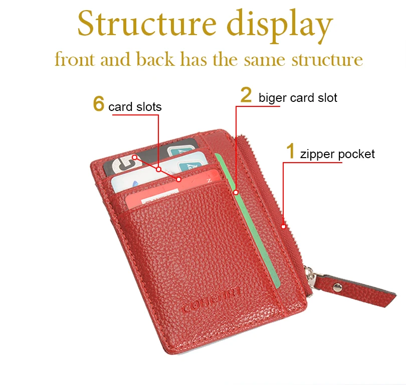 Interior:Photo Holder,Zipper Poucht,Coin Pocket,Note Compartment,Card Holder