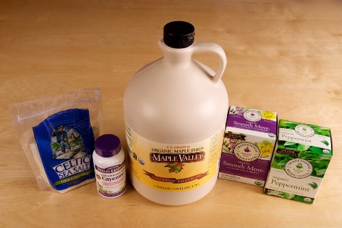 -. Binding : Health and Beauty -. Brand : Maple Valley / Organic Maple Cooperative -. Department : Weight Loss -. EAN : 0765299000093 -. Feature : All Organic components needed for the Stanley Burroughs' Master Cleanse Lemonade Diet (except lemons) / 1 gallon (128 oz) Grade B Organic Maple Syrup (Bpa Free and Formaldehyde Free) / 8 oz Organic compliant Sea Salt- Selina Naturally / Certified Organic Cayenne Pepper (Capsicum annum) / 1 box Organic "Smooth Move" Laxative Tea - Traditional Medicinals, 1 box Organic Peppermint Tea - Traditional Medicinals -. IsAdultProduct : 0 -. Label : Maple Valley / Organic Maple Cooperative -. Manufacturer : Maple Valley / Organic Maple Cooperative -. MPN : MCKIT-GAL -. PackageQuantity : 1 -. PartNumber : MCKIT-GAL -. ProductGroup : Health and Beauty -. ProductTypeName : HEALTH_PERSONAL_CARE -. Publisher : Maple Valley / Organic Maple Cooperative -. Studio : Maple Valley / Organic Maple Cooperative -. Title : Maple Valley Organic Master Cleanse Lemonade Detox / Diet Kit 16 Day Replacement Set -. UPC : 765299000093