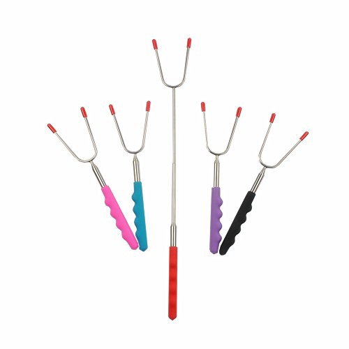 - Colorful Design for children : 5 multi colored rubber handles make identification easy when kids join in the fun.No more fighting about which marshmallow stick belongs to who.
