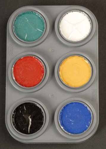 Grimas theatre quality water based make-up face paint palette A. Includes all the main colours you will need for facepainting. This palette includes 6x2.5ml tubs of water based make-up facepaint in the colours 001 white 201 yellow 301 blue 401 green 505 red and 101 black. Can be applied directly onto the skin with a damp make-up sponge or brush and can be removed with warm soapy wtaer.Feature