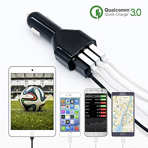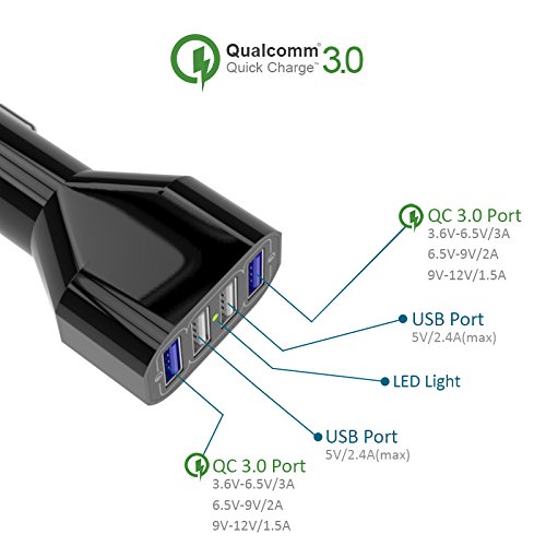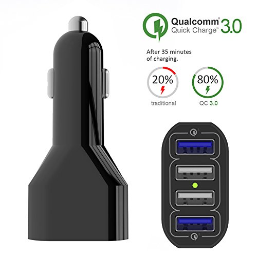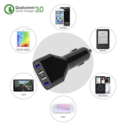 50W USB Car Charger, 4-Port USB Car Power Adapter with Quick Charger 3.0 + Smart Identification for iPhone 6S / 6 Plus / 5S,Samsung Galaxy S6 Edge / S5, Note 4 / 3, Nexus 5X / 6P and More