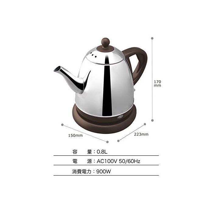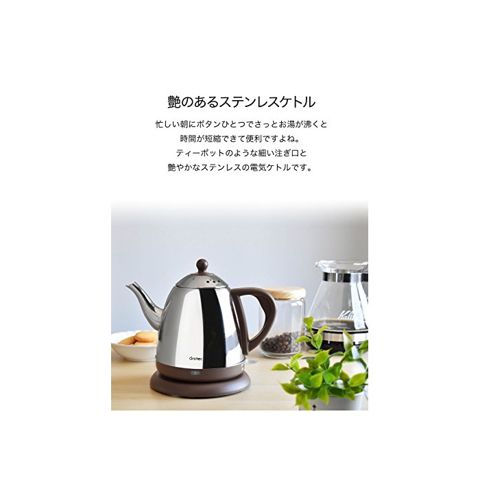 원본상품명: dretec(ドリテック) 電ケトル ステンレス コヒ ドリップ ポット 細口 湯沸かし 0.8L PO-115BRDI (ブラウン)