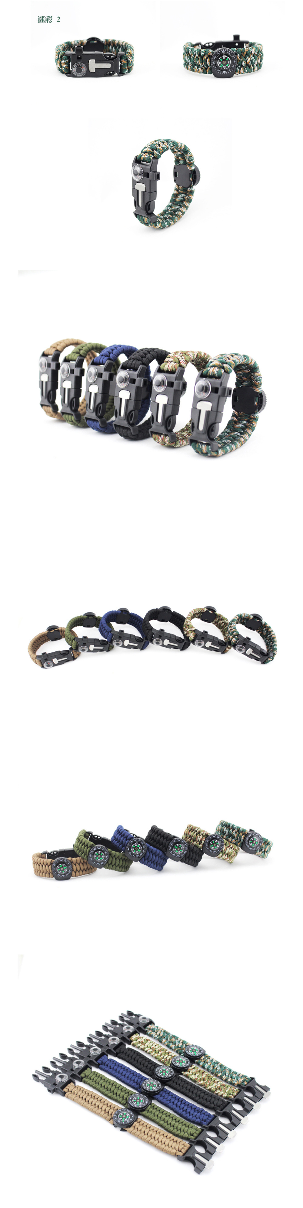 爆款户外三股求生手环 户外伞绳指南针温度计打火石逃生生存手链u0026nbsp;u0026nbsp;