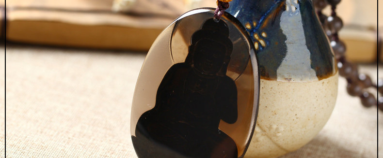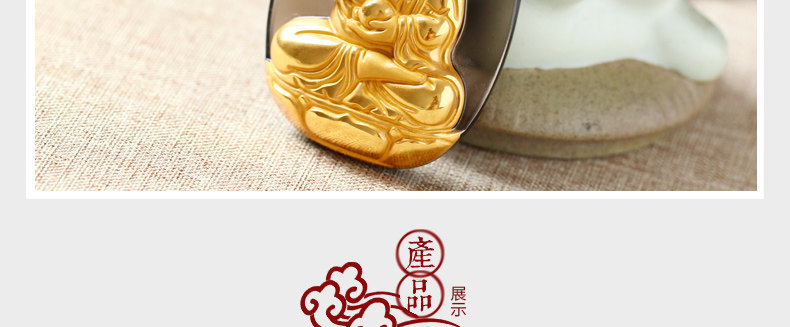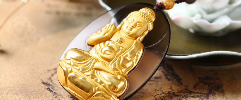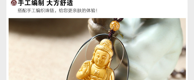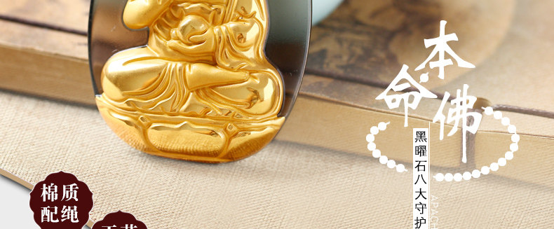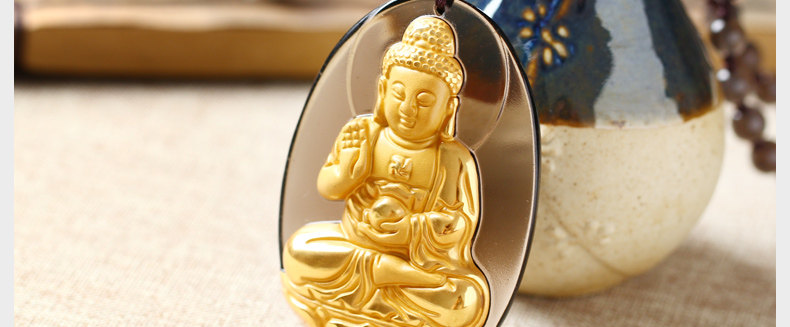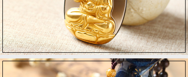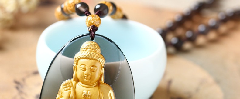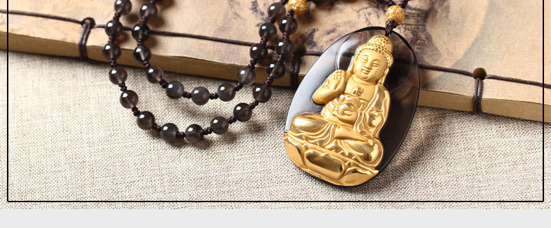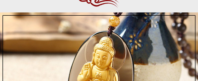 开光天然冰种镀金黑曜石阿弥陀佛吊坠生肖属狗属猪本命佛守护神