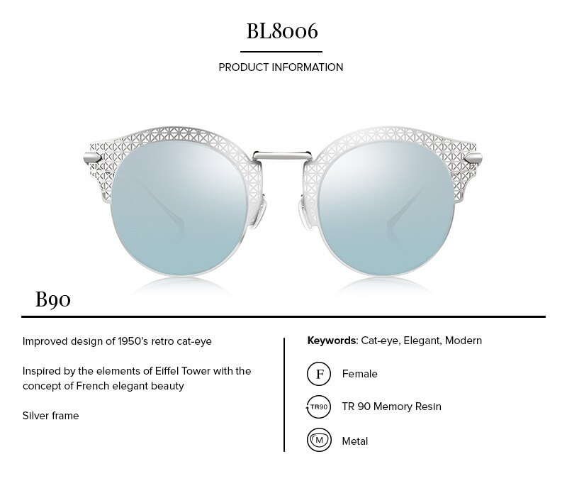 These BOLON sunglasses feature a very chic and elegant CAT EYE shape. This unique design is made of superior SILVER color metal frame with a BLUE GREY color UV 400 protection lenses offering exceptional protection from the sun all day long offer and a unique finishing touch, matching to all your outfit styles. Comes with a free premium black leather protective case & a branded cleaning cloth.