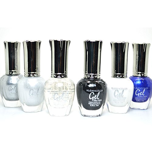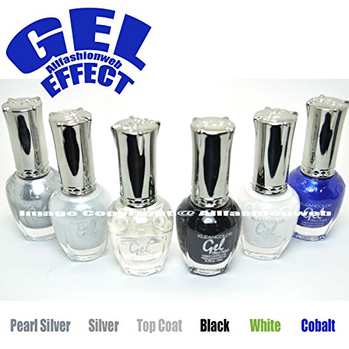 -. Title : KLEANCOLOR 6 GEL EFFECT NAIL POLISH BLACK WHITE SILVER TOP COAT LACQUER K-GSET01 + FREE EARRING