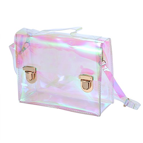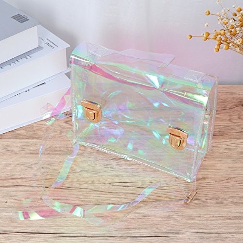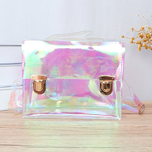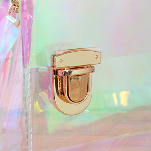 Package Including 1 x Women PU Transparent Clear See Waterproof Medium Fashion Handbag Purse Shoulder Bag (Purple and Green) 0