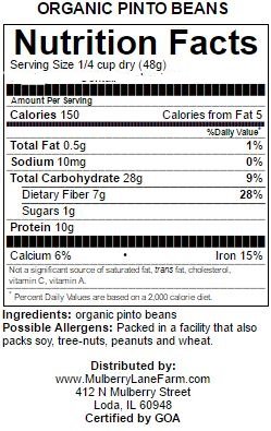Pinto Beans, 5 lbs (five pounds), Dried, USDA Certified Organic, Non-GMO, BULK