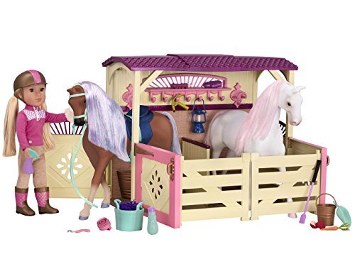 -. Binding : Toy -. Brand : Glitter Girls by Battat -. EAN : 0062243337190 -. Feature : Horse barn that fits two 14" horses. / Perfect size for most 14" dolls. / The perfect addition to the GG collection and a great accessory for the Glitter Girls horses. / This playset includes: (1) 14" horse barn (1) saddle pad and English saddle (1) Plastic bridle (1) basket of apples (1) scraper and grooming glove. / Collect all of the Glitter Girls horses and accessories! / Please note that dolls and horses sold seperately -. Label : Branford LTD -. Manufacturer : Branford LTD -. Model : GG57000Z -. MPN : GG57000Z -. NumberOfItems : 1 -. PackageQuantity : 1 -. PartNumber : GG57000Z -. ProductGroup : Toy -. ProductTypeName : TOYS_AND_GAMES -. Publisher : Branford LTD -. ReleaseDate : 2017-09-29 -. Studio : Branford LTD -. Title : Glitter Girls Horse Barn -. UPC : 062243337190 -. Warranty : No Warranty