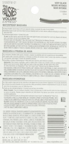 -. Binding : Misc. -. Brand : Maybeline New York -. Color : Very Black -. IsAdultProduct : 0 -. Label : Maybelline New York -. Manufacturer : Maybelline New York -. ProductGroup : Beauty -. ProductTypeName : BEAUTY -. Publisher : Maybelline New York -. Studio : Maybelline New York -. Title : Maybelline New York The Falsies Volum' Express Waterproof Mascara, 0.25 Fluid Ounce