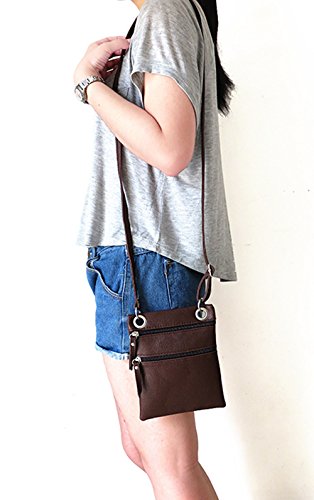 -. Feature : Faux leather. / Size: 15*19*2cm. / 2 zipper pockets,adjustable shoulder strap. / It can be used as a cellphone bag/crossbody bag/shoulder purse. / Great for cellphone, wallet, keys, earphone, coin.