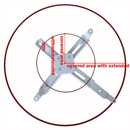 - Feature : Extension poll included. 5.9 inch without extension poll. Height is adjustable from 18.1" to 28.3" with the extension poll / Ceiling plate dimensions 4 in x 1.5 in, Heavy duty steel construction, Maximum loading 44 lbs (20 kg),adjustable ceiling plate up to 90 degrees swivel / With two pair of the longer extension adaptors the mount could cover an area up to 17 inch in diameter / Package content: Ceiling plate, ceiling poll, mounting arms, extension adaptors and standard hardware to your projector and ceiling included