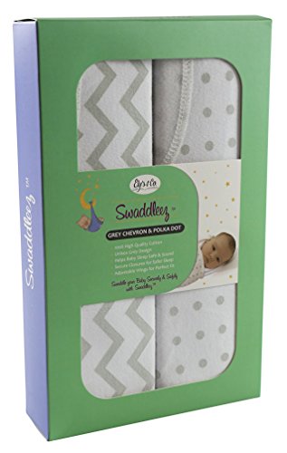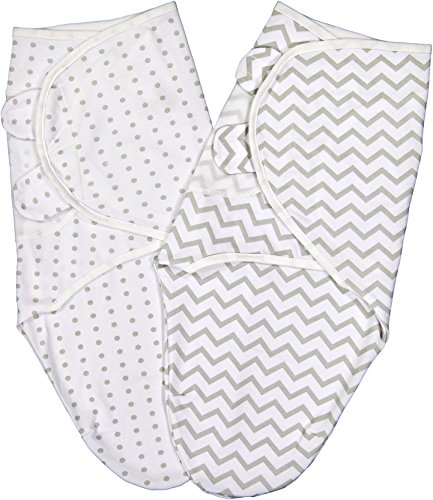 Ely's & Co Swaddle Blanket Adjustable Infant Baby Wrap Set 2 Pack (0-3 Months, Grey Chevron and Polka Dots)