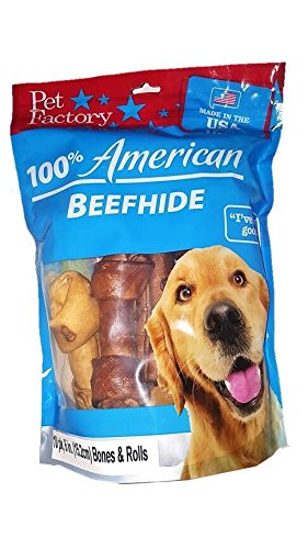 -. Title : Pet Factory 78254 Made in USA Value Pack Assorted Flavored (Beef & Chicken) 6-7" Rawhide Chews for Dogs
