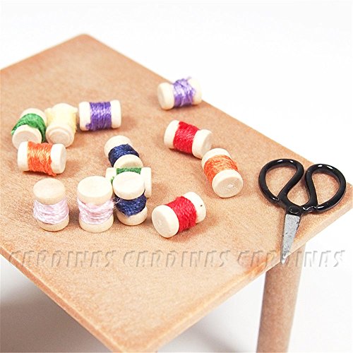 -. Feature : Scale: 1:12 Dollhouse Miniature Decor / Including: 15x Spool (Not Including Other Items) / Approx. Size (LxWxH): 0.5x0.5x0.7 cm - 0.2x0.2x0.3 inch / High Details and Workmanship: For Dollhouse Decor of Livingroom, Bedroom, Diningroom,Study Room, Sewing Room, Bath Room, Play Room etc.