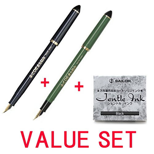 -. Publisher : Sailor Fude De Mannen - Stroke Style Calligraphy Fountain Pen Nib Angle 55 Degrees (11-0127-767) & Nib Angle 40 Degrees (11-0127-740) & Cartridge Ink Black (13-0402-120)VALUE SET!!