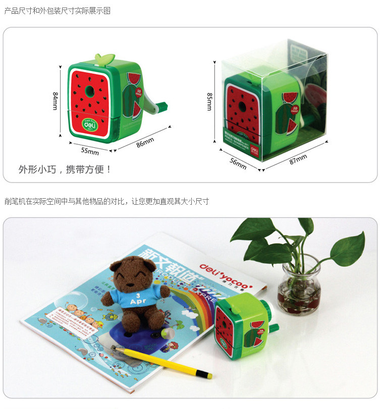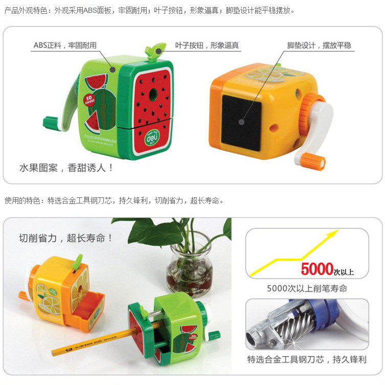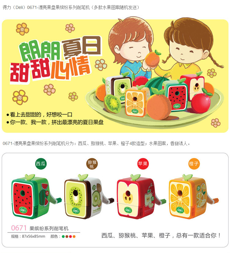 得力0671削笔机果缤纷手摇削笔器铅笔刨学生卷笔刀笔刨卷笔机