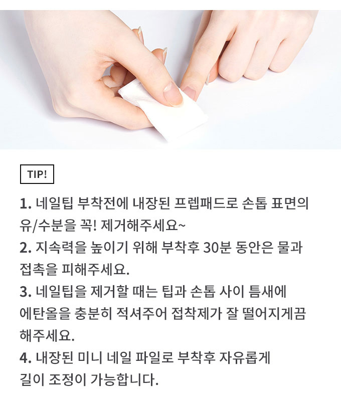 ネイルチップ裏面に強力接着の両面テープがついているので簡単に付けることができます。