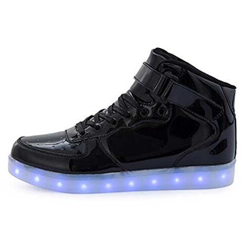 -. Feature : Fabric-and-Leather / USB rechargeable, one charge for 2~3 hours Shoes has 7 Static Colors and 4 Color Changing Mode: Red, Blue, Green, Purple, Sky Blue, Aqua, White & White Flashing, Color Changing Slowly, Color Changing Quickly, Random Color Changing.(Color changing will rotate through each color) / SWITCH INSTRUCTION: Hidden switch by the charging port. Press it to switch on.It starts with steady red light.With each press,it changes to another light mode. Press the switch for 12 times to turn the light off. / High-top silhouette with lace up front closure with blind eyelets, adjustable hook-and-loop ankle & toe straps for an extra secure fit.Anti-odor moisture-wicking textile lining with anti-microbial treatment offers a great in-shoe feel; plush tongue and collar provide added stability and comfort,Please carefully compare the size chart (in the description) with your kids feet length before ordering! / The collar and tongue are padded for comfort Safe to play, It can be charged by phone chargers which you use for charging your phones.These Light-up LED shoes are perfect for the club, a rave party, or just a night out on the town. It is your best choice for footwear for any occasion you want to be noticed at.