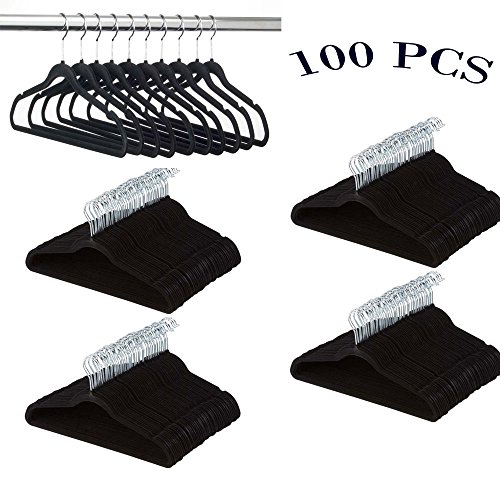 -. Title : New 100Pcs Flocked Non Slip Velvet Chrome Clothes Suit/Shirt Hangers Set Black