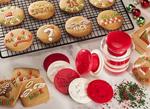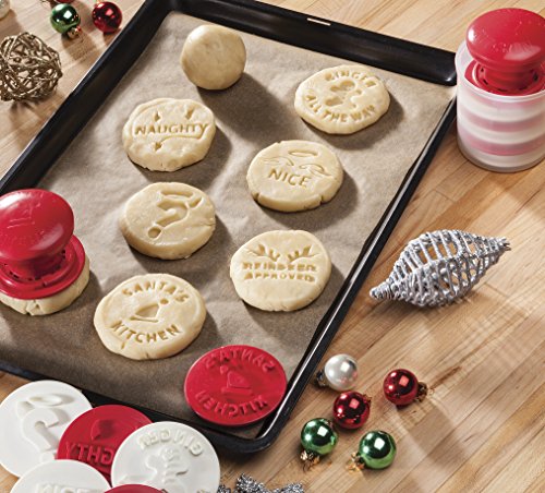 Hutzler Santa’s Kitchen Cookie Stamp Set of 6 with Measuring Cup Storage Container