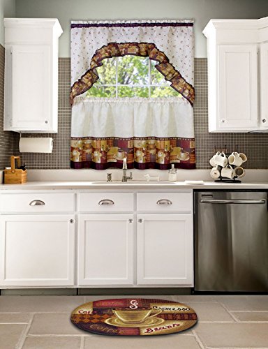 Achim Home Furnishings Coffee Tier and Swag Window Treatment Set, 57 by 36-Inch, Brown