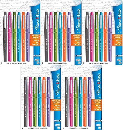 -. Title : Paper Mate leeaXy Flair Felt Tip Pens, Medium Point, Assorted Colors, 6 Pack (5 Units)