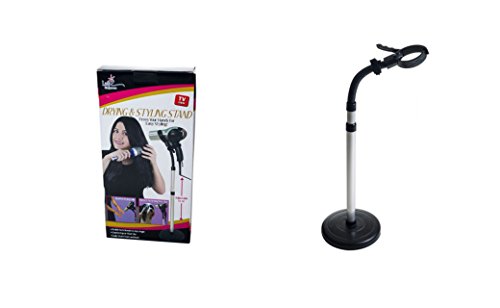 - Specifics Hair dryer stand Can be placed on countertops or floors Holds standard and oddly shaped hair dryers Can be used while drying pets May also be used to blow back hair during guitar solos Height adjusts from 27€ to 39€Colour: Black