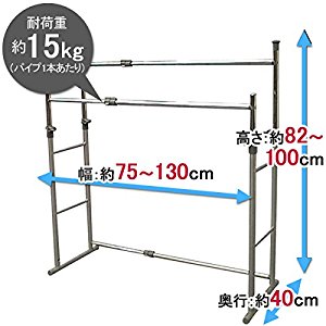 耐荷重(約):パイプハンガー1本あたり15kg