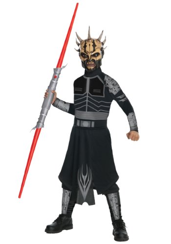 -. Binding : Toy -. Brand : Rubie's -. ClothingSize : Large,Medium,Small -. Color : Black -. Department : boys -. Feature : Savage Opress costume from Star Wars / Features tunic and pants with attached boot tops / Belt and mask included / Officially licensed costume / Rubies brings fun to dress-up with costumes and accessories kids play with all year long -. Label : Rubies - Domestic -. Manufacturer : Rubies - Domestic -. MPN : 90005403 -. NumberOfItems : 1 -. PackageQuantity : 1 -. PartNumber : 90005403 -. ProductGroup : Toy -. ProductTypeName : TOYS_AND_GAMES -. Publisher : Rubies - Domestic -. Size : Large,Medium,Small -. SKU : WC31491 -. Studio : Rubies - Domestic -. Title : Star Wars Child's Savage Opress Costume -. Warranty : Guaranteed against manufacturer defects