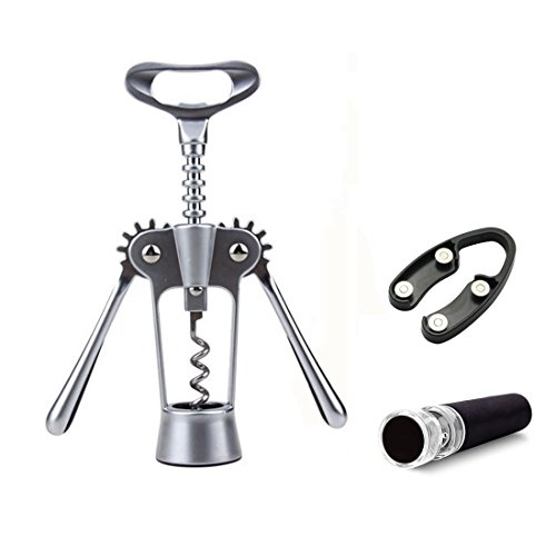 -. Feature : HIGH QUALITY MATERIAL: This wine opener features zinc alloy body, stainless drill bit, corrosion resistance, oxidation resistance, not easy to rust, also easy to clean after use. / STURDY STAINLESS STEEL SPIRAL DRILL: Sharp spiral drill, you just need to gently twist then you will easily pull out the cork, and will not damage the cork. / MULTI-FUNCTION: The corkscrew opener plays a dual role as both a beer and wine opener, and the buckle design make it convenient to hang and carry. / EASY TO USE: This professional wine bottle opener is foolproof and efficient, simply place the wine corkscrew opener over the bottle, twist the handle to insert the auger into the cork, and watch the opener's wings rise. Then press the wings down to extract the cork. Far superior corkscrew, efficiently open many wine bottles for you. / ERGONOMIC WING HANDLES: Double wing rubber handle makes this bottle opener comfortable to grasp and effortless to turn, even when you need to use a little more effort than usual to open a stubborn cork, free from injury, allowing you to easily remove any size cork quickly and efficiently.