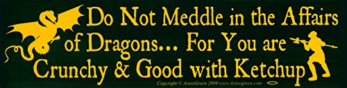 -. Title : Do Not Meddle In The Affairs Of Dragons... For You Are Crunchy & Good With Ketchup - Magnetic Bumper Sticker / Decal Magnet (11.5" X 3")