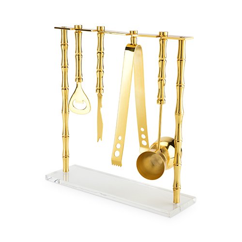 -. Feature : gold plated Stainless steel, acrylic / Set of 4 tools and hanging stand / midcentury chic!