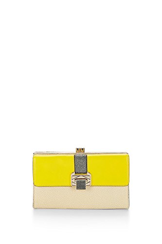 Rebecca Minkoff Collection Coco Two-Tone Leather Clutch, Yellow/Tan