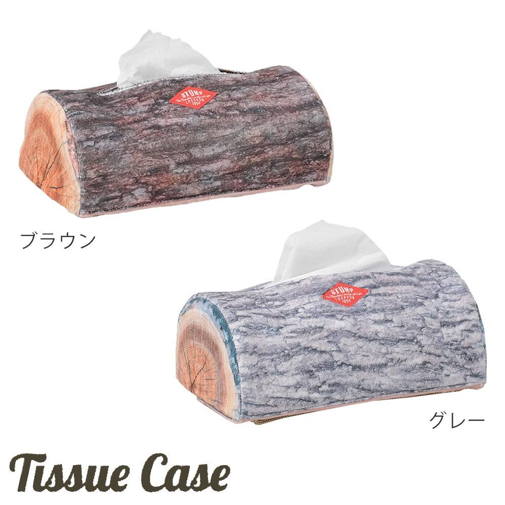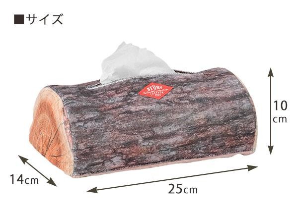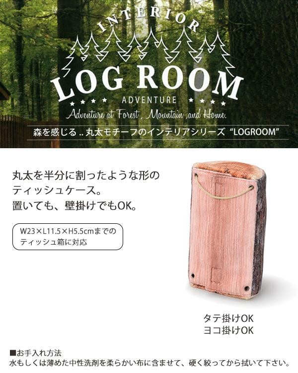 丸太を半分に割ったような形のティッシュケース。置いても、壁掛けでもOK。