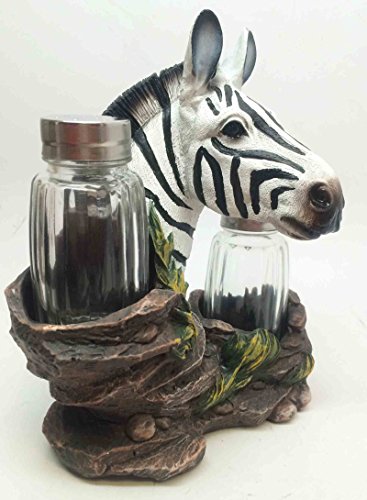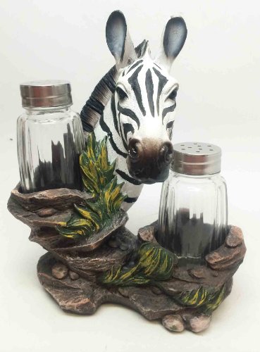 ZEBRA SAFARI STRIPED SPICE SALT PEPPER SHAKERS HOLDER FIGURINE STATUE