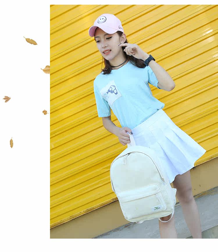 纯色小清新帆布双肩包女日韩版潮学院风简约休闲中学生书包女背包