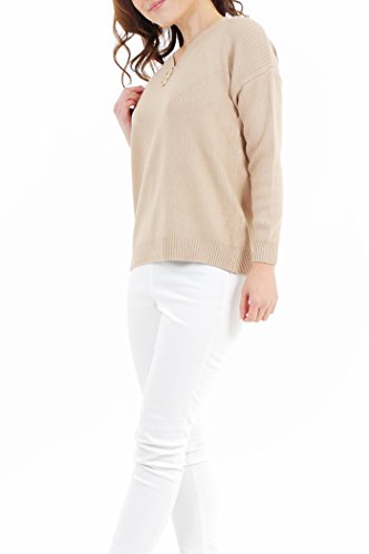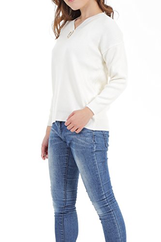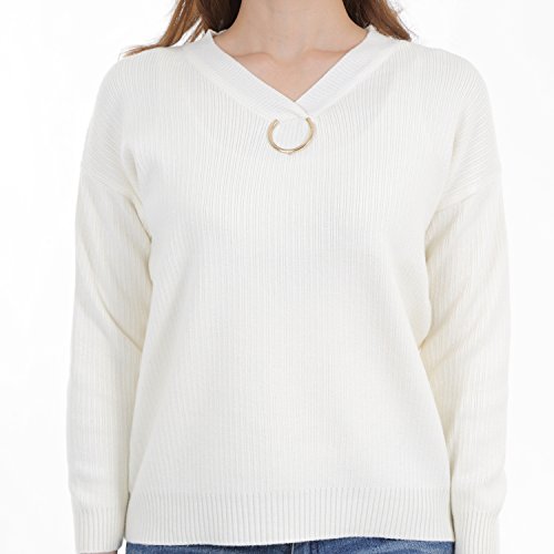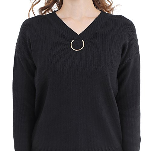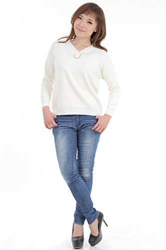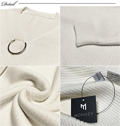 -. Title : [モノジー] MONOZY レディース リブ ニット セーター 長袖 Vネック ドロップショルダー リング