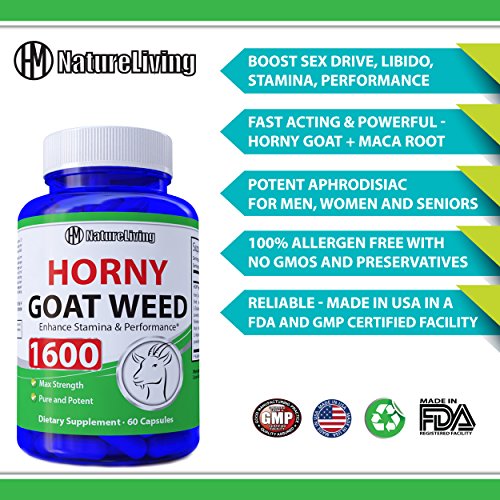 Premium Herbal Blend Horny Goat Weed was carefully formulated and proudly made and Bottled in USA to provide just the right dose to experience its safe and natural benefits. This unique powerful herb promotes high Sexual stamina and increased energy,graceful aging, supports skeletal health and regulates hormonal balance with each batch tested for safety and purity. Your Peace of mind guaranteed.