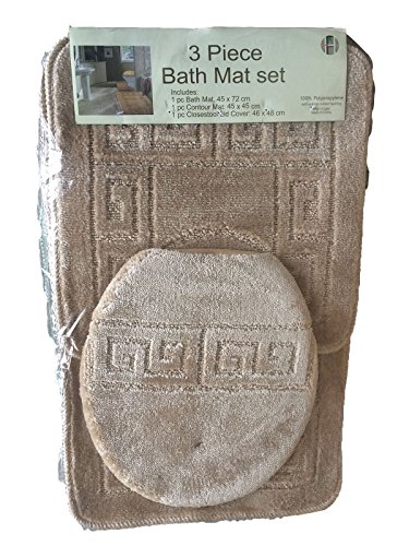 Luxlen 3 Piece Bath Rug Set (Bath Mat/Contour Mat/Lid Cover), Beige