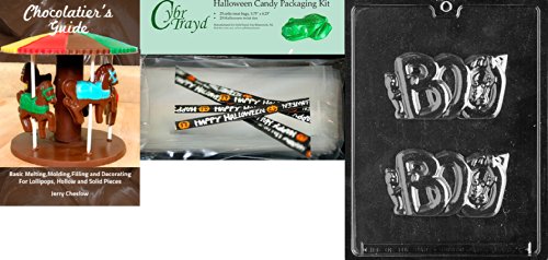 Cybrtrayd "Boo" Chocolate Mold with Chocolatier's Bundle, Includes 25 Cello Bags, 25 Happy Halloween Twist Ties and Chocolatier's Guide