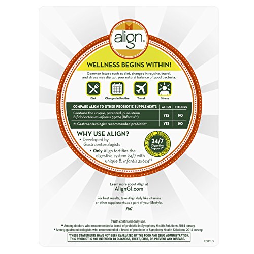 Keep your digestive system in sync, so you can continue doing the things you love to do. Align is a daily dietary supplement that fortifies your digestive system with healthy bacteria 24/7* with continued daily use. Only Align contains a unique, patented probiotic strain Bifidobacterium 35624TM. Align can help fortify your digestive system and help maintain its natural balance*. Chances are, you’ve considered several approaches to help support your digestive health, like changing your diet, exercising, or stress reduction. In addition to these behaviors, some people are taking a daily probiotic supplement, such as Align.Feature